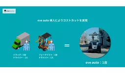 ~『eve auto』1台の導入で、トラック1台・フォークリフト1台分の運用コストを削減~