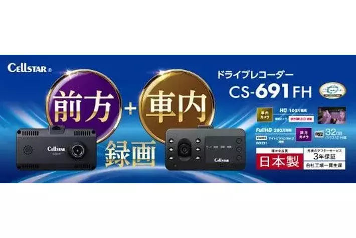 自動車関連エレクトロニス製品の開発・製造販売を主業務とするセルスター工業株式会社(本社:神奈川県大和市、代表取締役社長:勝永 直隆)は、本体に前方・車内側と2つのカメラを搭載し同時に録画できるドライブレコーダー「CS-691FH」を、2025年5月より発売いたします。