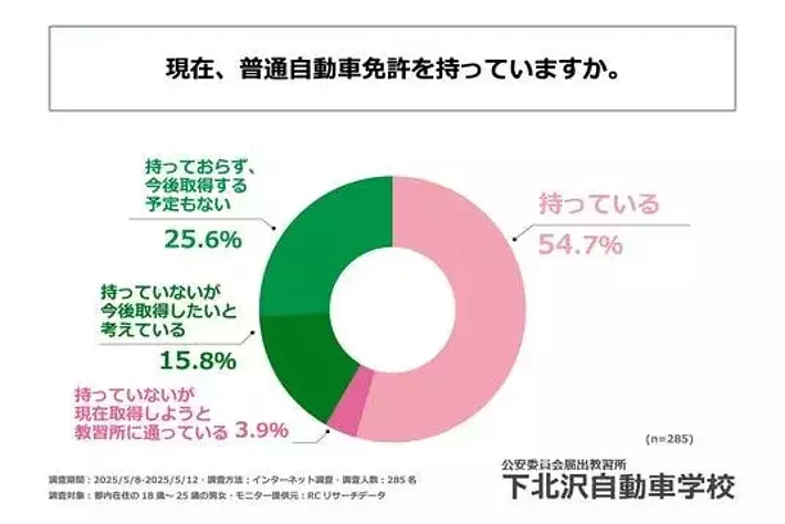 都内在住のZ世代(18歳~25歳の男女)の約75%が普通自動車免許を取得しているか、今後取得する意向がある!下北沢自動車学校株式会社が、都内在住のZ世代の「運転免許」に対する意識調査を実施!