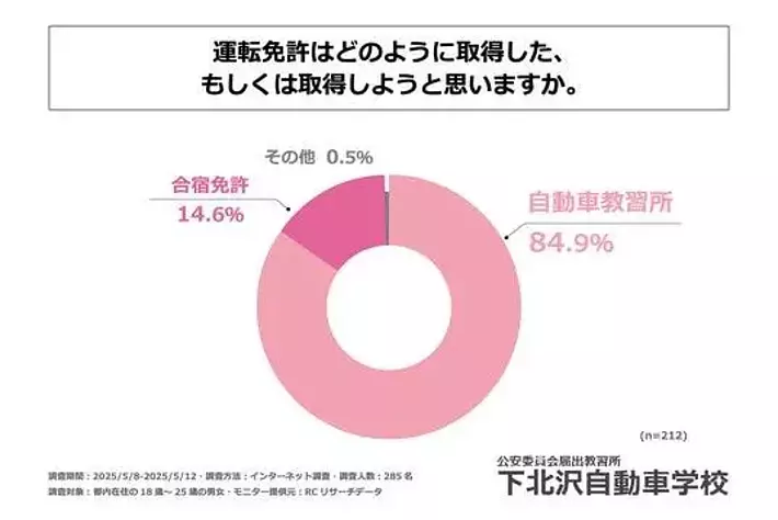 約85%の人が「自動車教習所」で運転免許を取得したか、今後取得しようと考えている