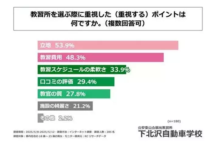 ・教習所を選ぶ際に重視した(重視する)ポイントのトップ3は、1位「立地」、2位「教習費用」、3位「教習スケジュールの柔軟さ」