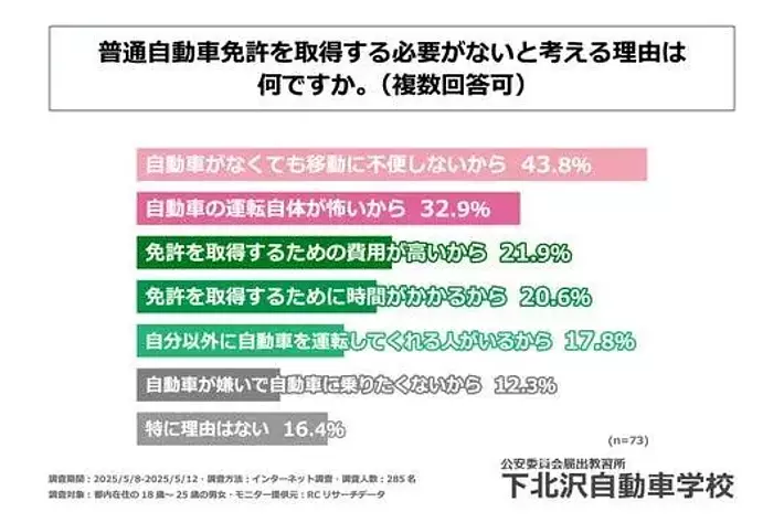 普通自動車免許を取得する必要がないと考える最大の理由は「自動車がなくても移動に不便しないから」