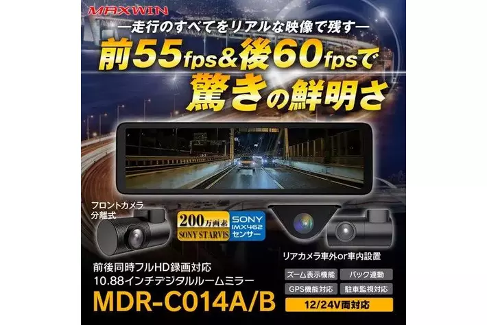 フロント/リアカメラともに高フレームレートで滑らかな映像を記録。デジタルルームミラーモードの後方映像もよりリアルに近くなりました。