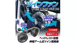 ツインファンなので循環スピードが速い!ヘッドレスト設置の伸縮アーム式ツイン扇風機