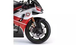 bimotaの職人がその手で仕上げた、美しい塗装を施されたカーボンファイバー製フェアリングには、近年のレーストレンドである、ダウンフォースを得るためのウイングレットを装備。専用のECUが車両速度とブレーキ作動を監視し、ケーブルとサーボモーターを介してウイングレットを自動的に調整。ブレーキングやコーナー進入、中間コーナーで最適なダウンフォースを発揮し、ホイールリフト抑制などの効果をもたらします。