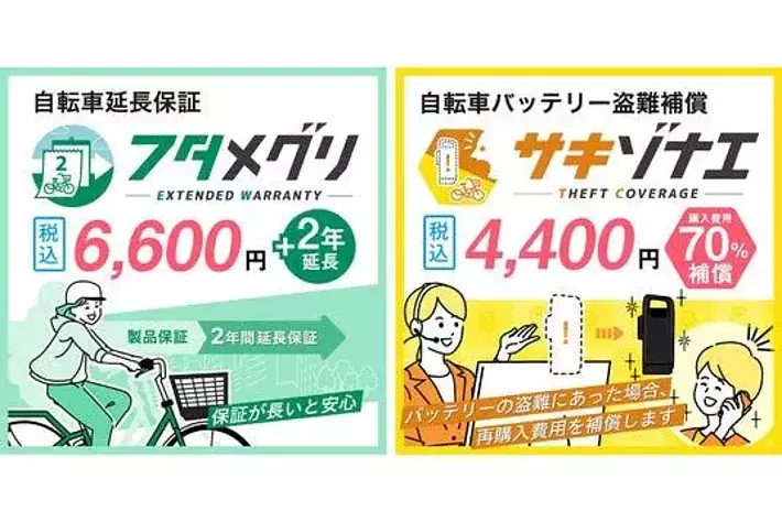新たな有償オプションサービス、自転車延長保証「フタメグリ」と自転車バッテリー盗難補償「サキゾナエ」の販売を開始