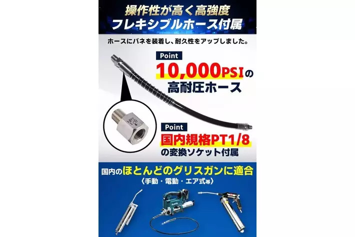 10,000PSI高耐圧フレキシブルホース付属。