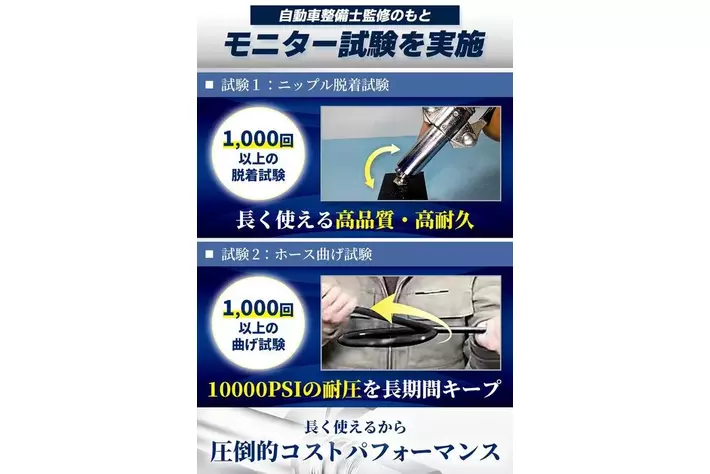国家資格2級自動車整備士/自動車検査員が現場目線で開発。モニター試験で高品質・高耐久を実証。