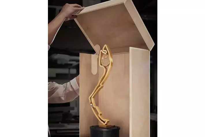 フォーミュラ1(R) タグ・ホイヤー グランプリ・ドゥ・モナコ 2025の優勝トロフィーを保護、展示するために特別にデザインされたルイ・ヴィトンのトロフィー・トランクは、国歌斉唱中のスターティンググリッドや、ランド・ノリスへトロフィーを贈呈する表彰台など、クラフツマンシップやサヴォアフェール(匠の技)、革新的なデザインを強く印象付けるいくつかの重要なシーンに登場しました。