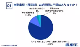 「とても不満に感じている(重課に納得できない)」と回答した人が82.2%にのぼり、全体の9割以上が何らかの不満を抱えていることが明らかになりました。不満を感じていないという回答はわずか6%にとどまり、旧車オーナーにとって自動車税の負担は大きな課題となっている実態が浮き彫りになりました。