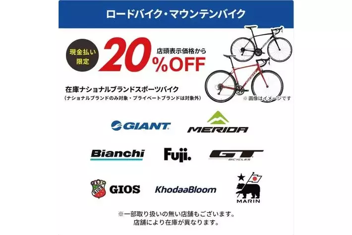 また、オープンを記念して、一部スポーツバイクが店頭表示価格から20%OFFでご購入いただけます。