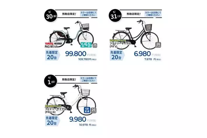 ~台数限定で自転車が7,678円!岸和田店・岸和田磯上店にて協賛セール実施!~