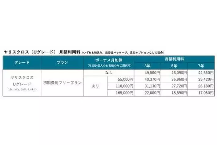 なお、ヤリスクロス(Uグレード)は、月額17,050円(税込み)*⁵からご利用いただけます。