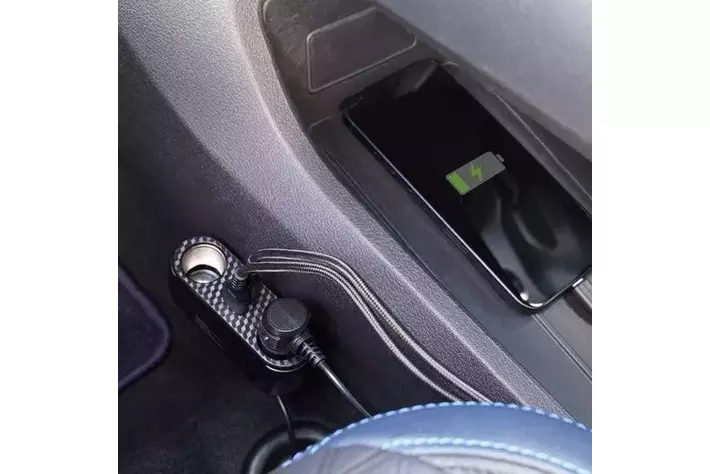 アクセサリーソケットに増設できるケーブル型の充電器本製品は車のアクセサリーソケットに挿して使うケーブル型の車載充電器です。一体型のケーブルは長さが約90cmあり、後部座席に向けた設置も可能です。