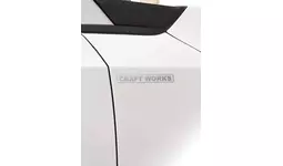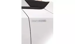 CRAFTWORKS カー用クリアステッカー 3枚セット。背景がクリア素材のため、車のボディカラーを選ばずスマートに貼り付け可能。文字色にはシルバーを採用し、黒・白どちらの車体にも映えるデザイン。