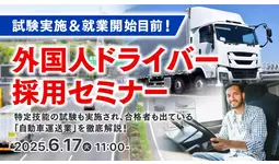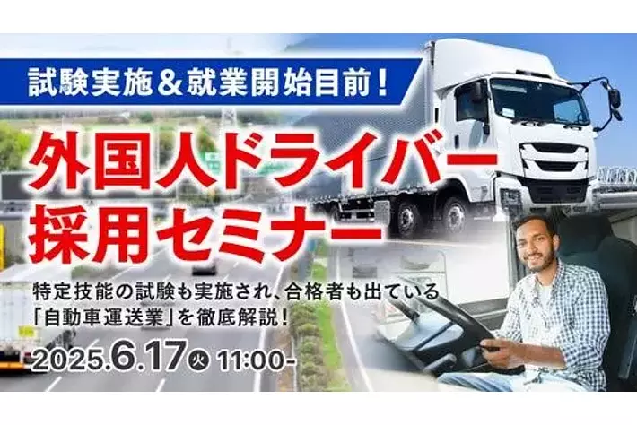 タイトル:試験実施&就業開始目前!「外国人ドライバー採用セミナー」開催日時:2025年6月17日(火) 11:00 ~ 12:00 ※10分前から入室可能