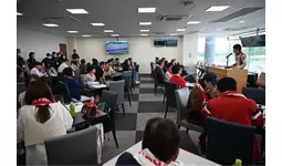 まずは、レースの見どころやルールについて、出走前の鶴賀自らドライバー視点でお客さまに解説するトークショーを開催し、レースに対する理解を深めていただきました。続いてレースの雰囲気や臨場感をより強く体感していただくため、場内の見学ツアーを行いました。チームが出走前の準備をするパドックでは、実際の車両を間近でご覧いただくとともに、間もなくレースを迎えるドライバーやメカニックたちの緊迫感を感じていただけたことと思います。また、通常では入ることができないスターティンググリッドにおいて、参加者全員での記念撮影もお楽しみいただきました。