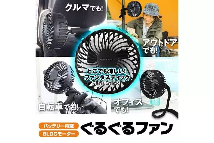 カー用品ブランドMAXWIN(運営:昌騰有限会社、所在地:大阪府岸和田市)は、ぐねぐね曲げてどこにでも取り付けられる変幻自在な扇風機『K-FAN15』の発売開始をお知らせします。巻きつけ、吊るし、自立スタイルなど、自由自在な設置が可能でアウトドアレジャーから家庭用やデスク周りにもオススメです。