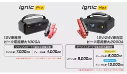 スイッチ一つで簡単に12V/24V出力を切り替え可能、ロードサービスなどのプロが使うものと遜色ない性能を持つIgnic Max(イグニック マックス)の2モデルをご用意。