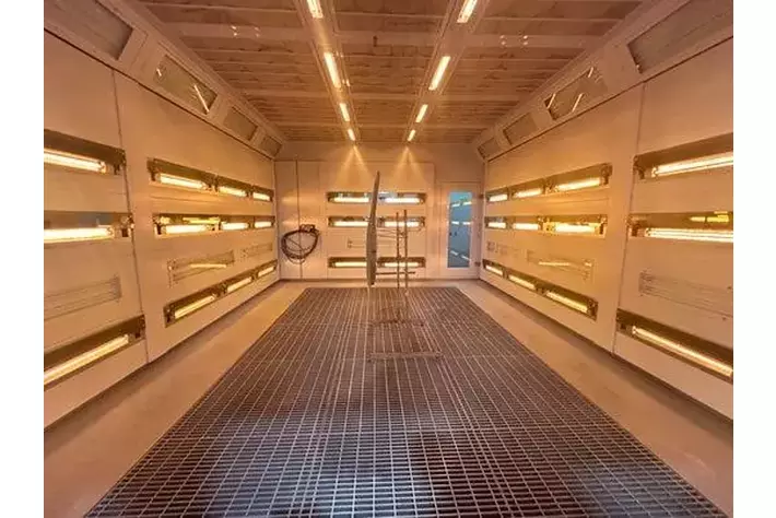 工場内には3次元ボディ計測システムや高張力鋼対応スポット溶接機、環境対応型塗装ブースなどを完備。修理精度と安全性を両立した、高品質な修復体制を構築しています。