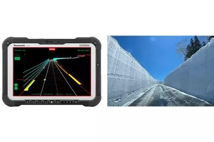 (左)除雪支援システム「SRSS」製品イメージ (右)実際の除雪現場イメージ