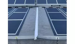建物にペロブスカイト太陽電池を設置する場合、建物が使用中でも、電池を容易に交換可能な仕組みが求められます。本実証ではファスナーを用いた取り外し式工法を開発し、大林組技術研究所本館の屋上へ施工しました。