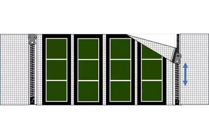 本工法は、ペロブスカイト太陽電池付きのシートと屋根や壁面に所定の間隔で固定したメッシュシートをファスナーで固定します。シートは通気性の良いメッシュシートで、耐候性の高い特殊ファスナーを使用しています。大面積でもファスナー部分で容易に連結でき、部分的に交換することが可能であり、長期的な保守性に優れています。今後は長期設置による耐久性の検証や、実際の取替工事を通じた施工性の評価も予定しています。