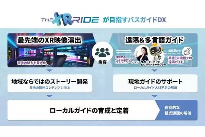 昨今の訪日観光客の増加を背景に、地方自治体でも訪日観光客の受け入れ体制の強化に向けた取り組みが進められています。一方で、訪日観光客に向けた新たな観光コンテンツの開発や、深刻化するバスガイド不足、特に多言語対応が可能な人材の確保が課題となっています。これらの課題に対応する新たな試みとして、大阪・関西万博の開催により観光需要が一層高まる大阪の地で、実証実験として行われるのが「The XR RIDE」です。