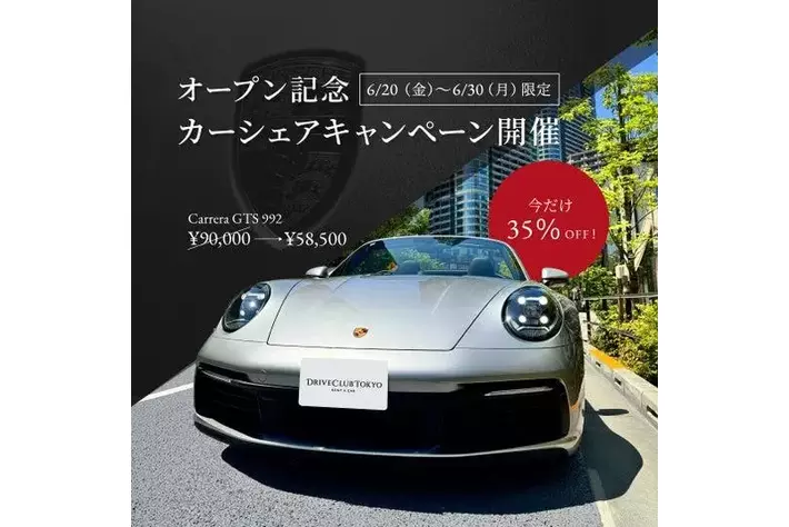 高級車シェアリングサービス「Drive Club Tokyo」(運営:株式会社S-TWO)は、東京都江東区・新木場を拠点に、高級車専門のカーシェア事業を2025年6月1日より開始いたしました。これを記念し、2025年6月20日~30日出発分のご予約を対象に、35%オフとなるオープン記念キャンペーンを実施します。