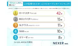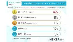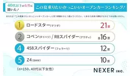 40代以下の男性に人気のオープンカーランキングでは、走りの楽しさとデザイン性を兼ね備えた「ロードスター」が1位に。