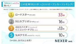 【梅雨明け間近!】この夏乗りたいかっこいいオープンカーランキング!性別、世代別で発表