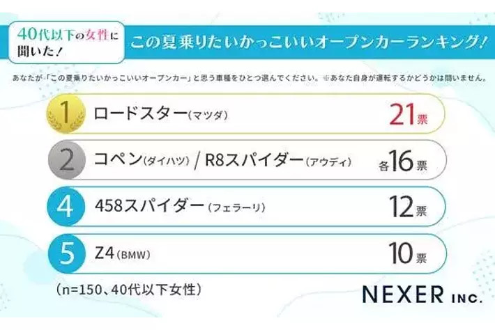 株式会社NEXER・この夏乗りたいかっこいいオープンカーに関する調査