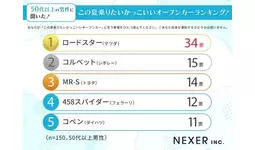 50代以上の女性に人気のオープンカーランキングでは、親しみやすさと走行性能を兼ね備えた「ロードスター」が1位に。
