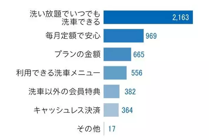 - 「Wash Pass」の満足しているポイントは「洗い放題でいつでも洗車できる」