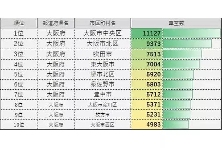 ■ 大阪府 市区町村別 車室数ランキング TOP10