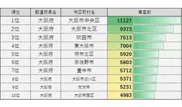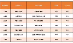 1位は大阪市中央区、2位は大阪市北区と、都心部の商業・業務集積地が上位を占めました。