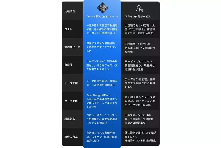 【比較でわかるトラキング式3Dスキャナーの優位性】