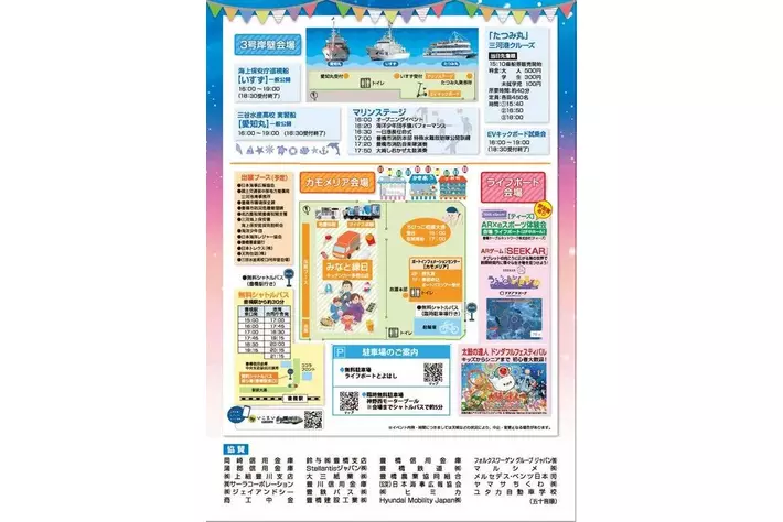 当イベントは毎年、港に親しみ、港湾について理解を深めるための機会として開かれ、会場は豊橋市神野ふ頭町のポートインフォメーションセンター「カモメリア」一帯です。イベント全体としては午後4時から午後9時までとなりますが、船舶の一般公開を含めた岸壁会場は午後7時までです。