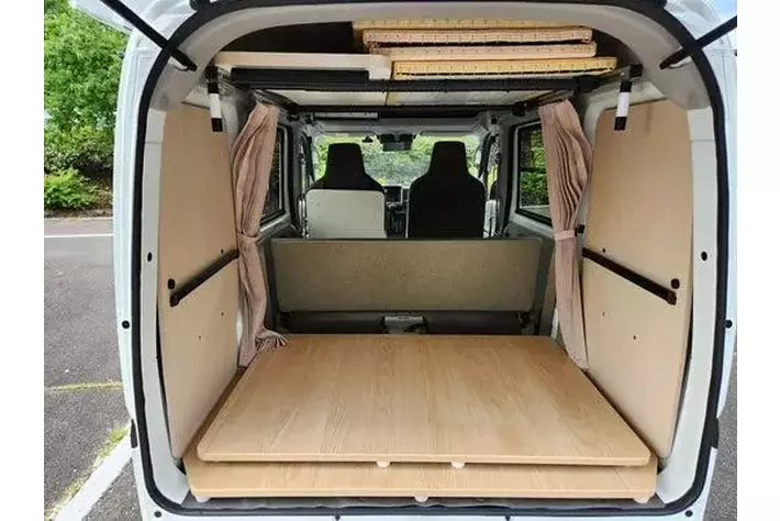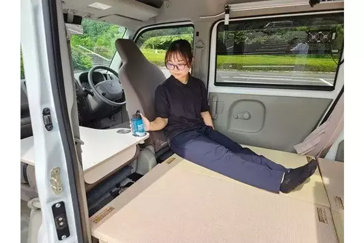 1.普段は4人乗りの軽バンが、有事の際はフルフラットな畳空間に転換。