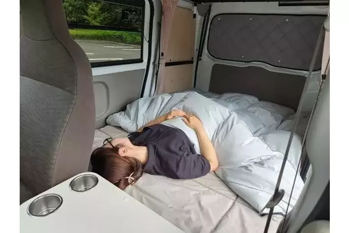 軽自動車の中とは思えないほど、大人がゆったりと就寝できる。