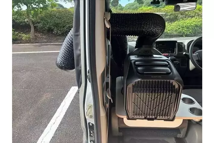 ポータブルエアコンの高断熱ダクト+密閉パーツは簡単に設置可能。