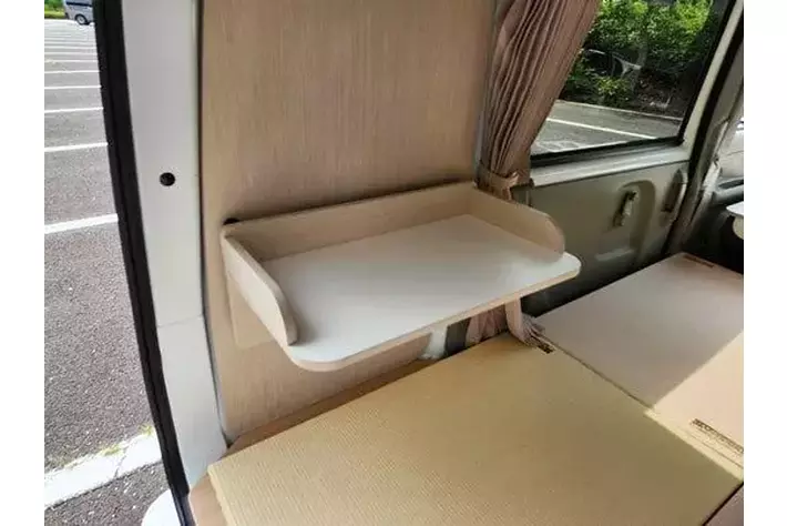 家具類は軽自動車という限られたスペースを考慮し、「レール脱着式」を採用した”浮かせた”構造とすることで、休憩のためのフラットスペースを邪魔しない設計を実現。