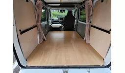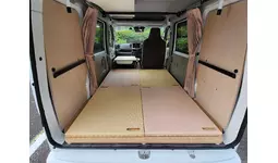 家具類は軽自動車という限られたスペースを考慮し、「レール脱着式」を採用した”浮かせた”構造とすることで、休憩のためのフラットスペースを邪魔しない設計を実現。