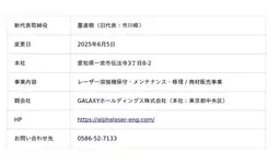 ALPHA LASER ENGINEERING株式会社、代表取締役交代およびGALAXYホールディングスグループに参画