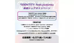 楽曲『IDENTITY feat. yuzuna』をInstagramストーリーでシェアし、専用フォームに応募すると、2025年8月21日(木)開催「IDENTITY -TOKYO-」のペアチケットが、抽選で3名様に当たる。
