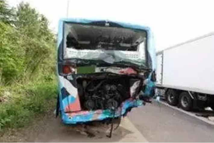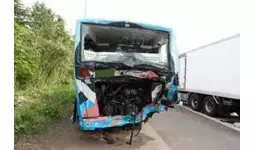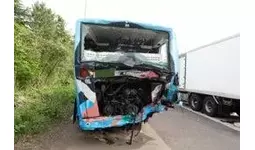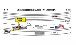 大型トラックが東北自動車道の第1車両通行帯を走行中、故障のため同通行帯に停車していた大型貸切バスと同バスの後方で故障対応していた運転者及び乗客2名に衝突。