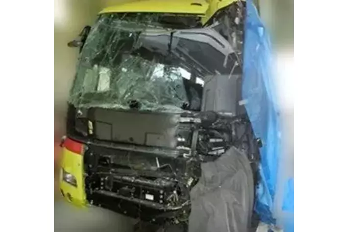 ハンドル操作を誤り隣車線の大型トラックに追突