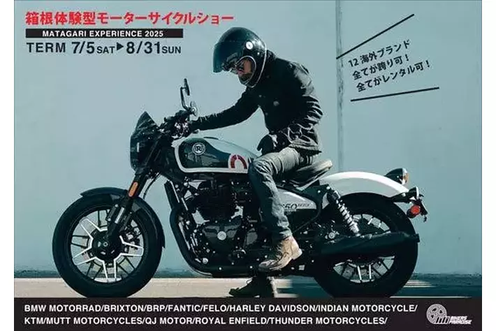 バイカーズパラダイス南箱根の大人気企画、全ての展示バイクが跨り可能な 「MATAGARI EXPERIENCE」。2025年はマタガルだけではなく、何と1時間3,300円(税込)でレンタルして箱根を周遊することも可能に! しかも今年は、12海外ブランドの協賛で、話題のニューモデルが勢揃い。