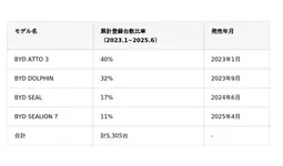最新モデルの「BYD SEALION 7」は、発売以降、幅広いお客様から期待を超えるバリューフォーマネーな最新BEVとして好評をいただいています。その結果、5月には日本自動車輸入組合(JAIA)がまとめた「輸入車ブランド別登録台数ランキング」で、BYDが初めてトップ10入りしたことに加え、6月も月間(過去最高)登録台数を更新するなど、BYDブランド全体のイメージや販売台数の向上に貢献しました。