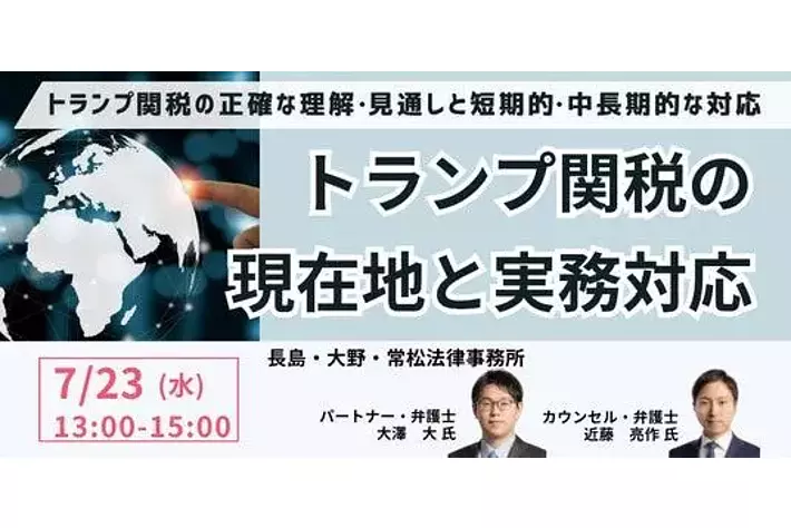 JPI(日本計画研究所)は、長島・大野・常松法律事務所 パートナー・弁護士 大澤 大 氏、カウンセル・弁護士 近藤 亮作 氏を招聘し、トランプ関税の現在地と実務対応について詳説いただくセミナーを開催します。